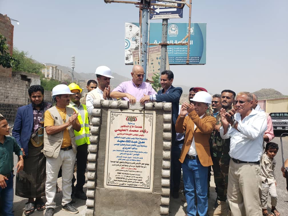 محافظ تعز يضع حجر أساس مشروع تأهيل خط الجامعة المرور