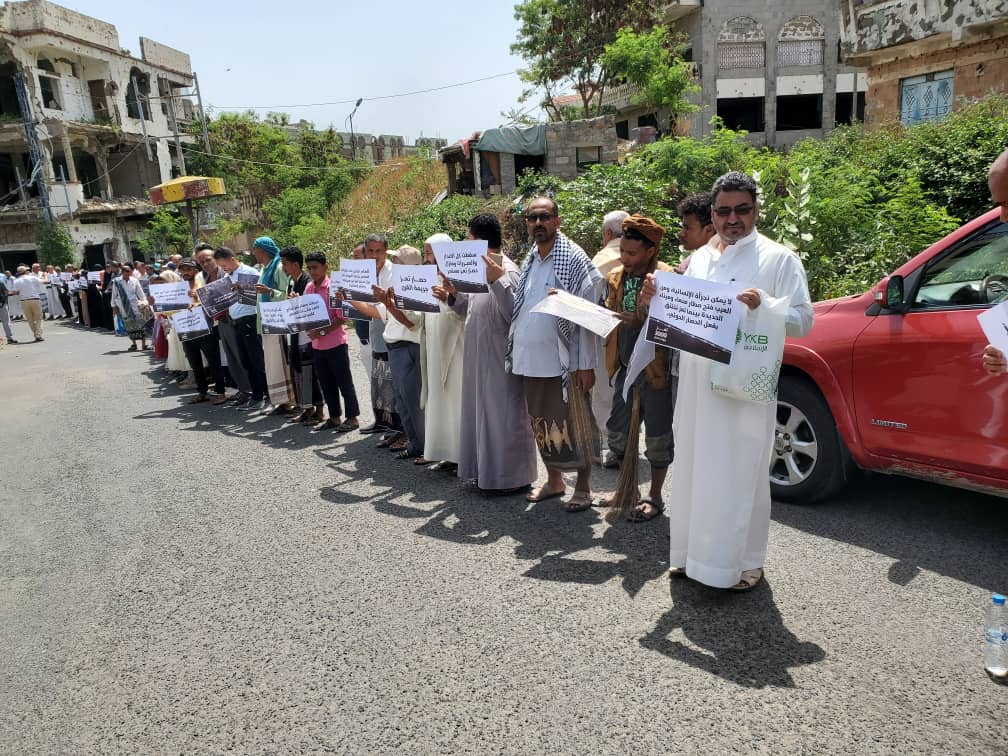 وقفة احتجاجية بتعز تطالب المجتمع الدولي الضغط على المليشيات الحوثية لفتح الطرقات