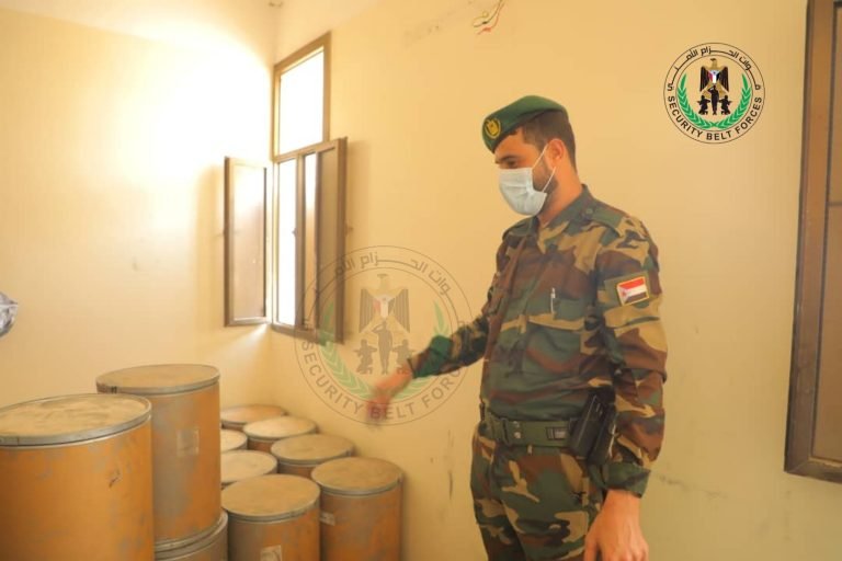 الحزام الأمني يضبط كميات كبيرة من المواد الكيميائية المستخدمة للأغراض العسكرية بعدن