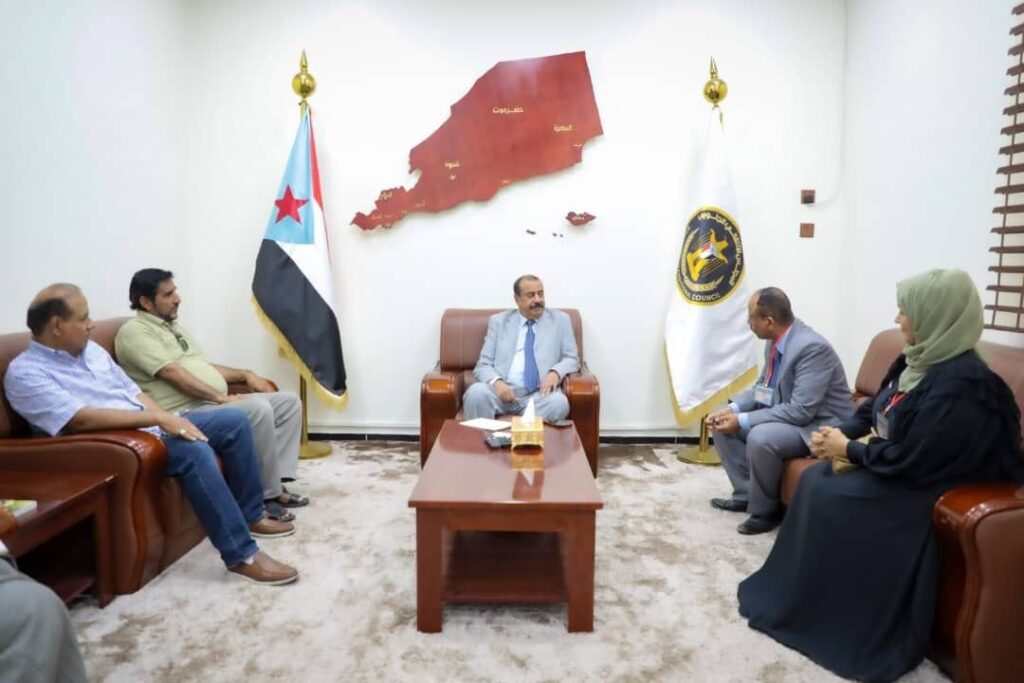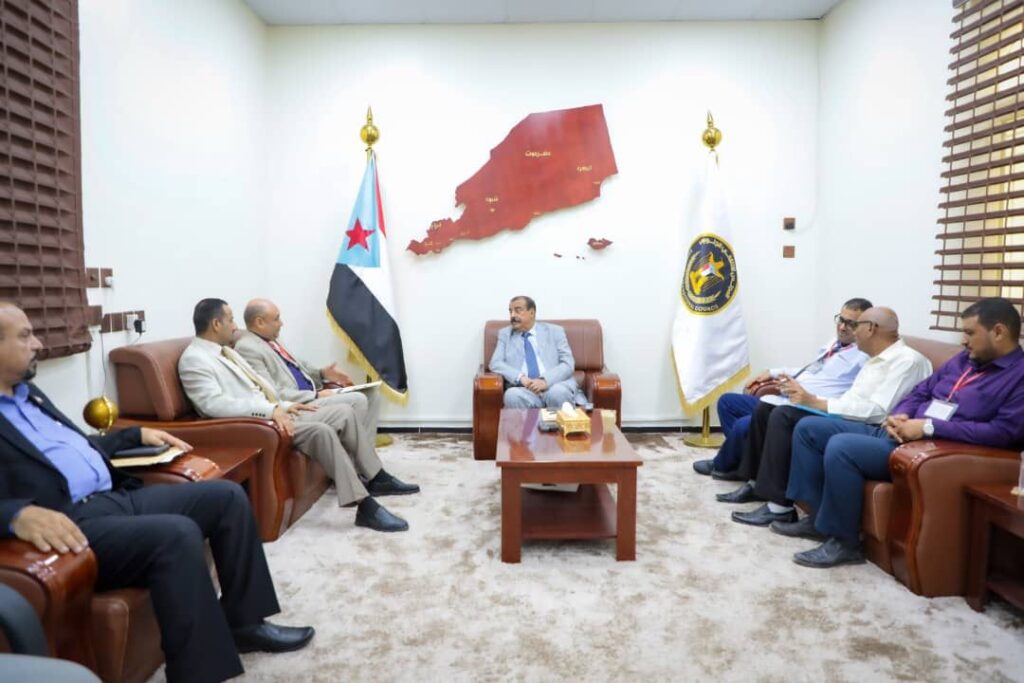 اللواء بن بريك يلتقي وفداً علمياً من الأكاديمية العربية للعلوم الإدارية المالية والمصرفية وجامعة العلوم والتكنولوجيا