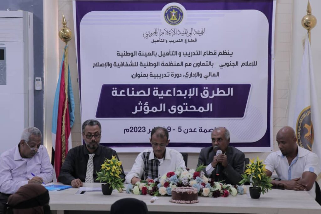 قطاع التدريب والتأهيل بهيئة الإعلام الجنوبي يختتم دورة تدريبية في صناعة المحتوى المؤثر