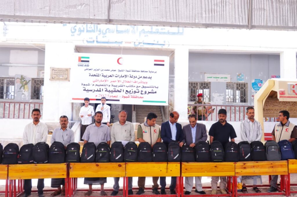 الهلال الأحمر الاماراتي يدشن مشروع الحقيبة المدرسية في محافظة شبوة