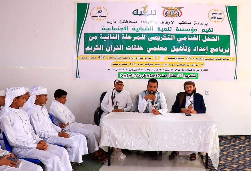 “تنمية الشبابية” مع أوقاف مأرب تختتم المرحلة الثانية من برنامج تأهيل معلمي حلقات القران الكريم