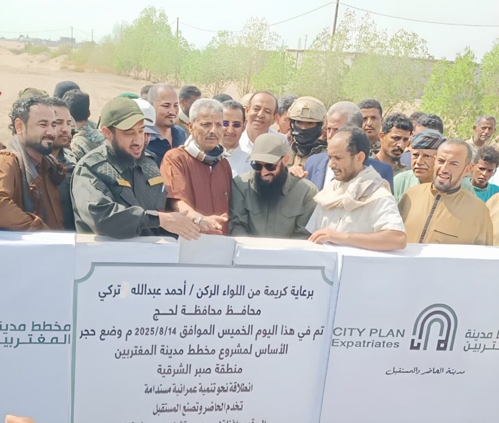 محافظ لحج يضع حجر الأساس لمدينة المغتربين السكنية بمساحة 140 فدانا