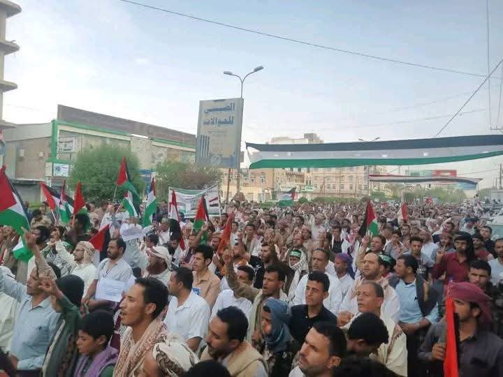 وقفة جماهيرية في مأرب تندّد بسياسة التجويع الإسرائيلية في غزة