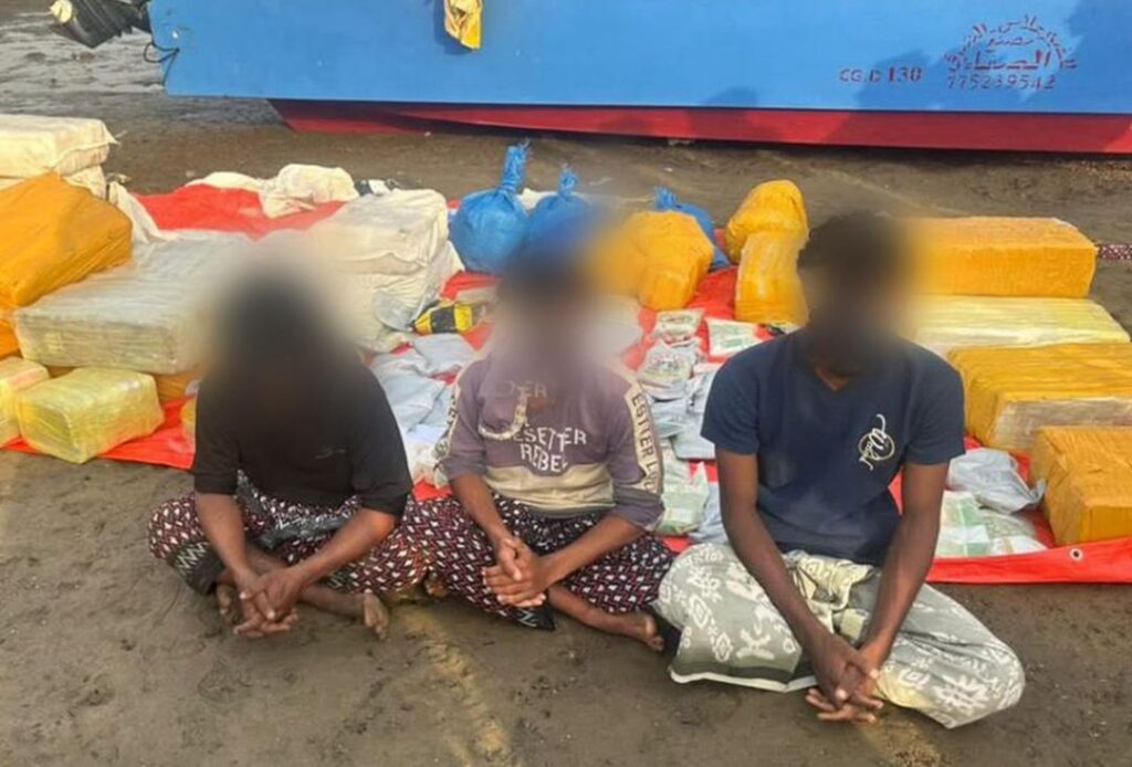 قوات الحملة الأمنية المشتركة تضبط قاربًا يحمل نصف طن حشيش قرب باب المندب