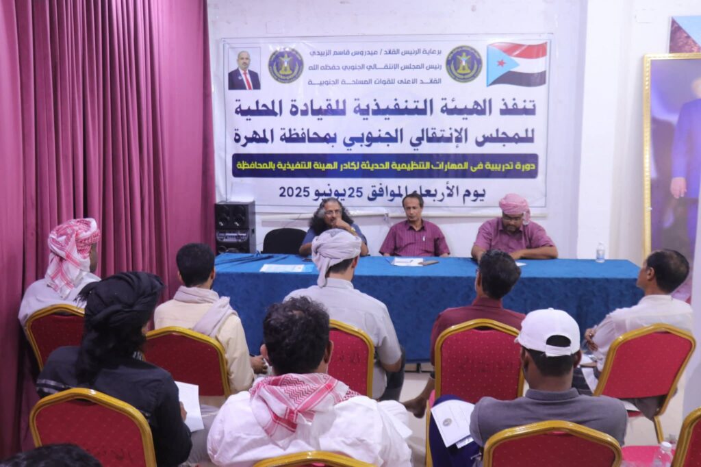 تنفيذية انتقالي المهرة تنفذ دورة تدريبية متخصصة في المهارات التنظيمية الحديثة لكادرها التنفيذي