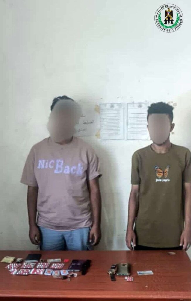 الحزام الأمني بعدن يضبط متهمين بحوزتهما مواد مخدرة في خورمكسر