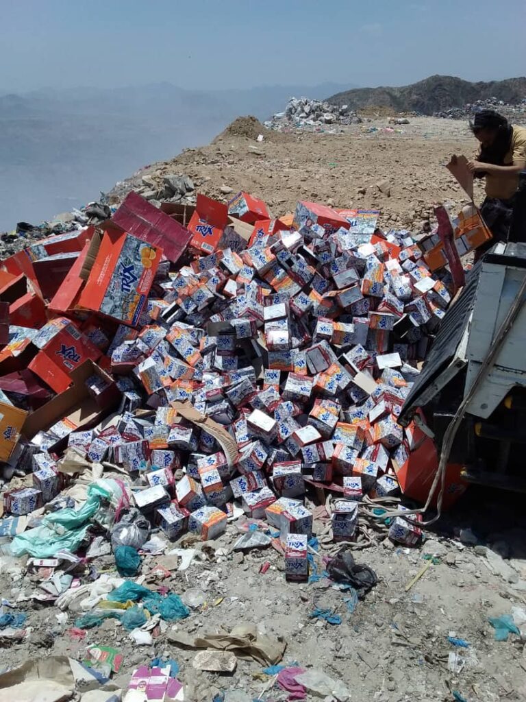 نيابة الصناعة والتجارة في تعز تتلف 100 كرتون من مسحوق شراب صناعي يحتوي على مواد مسرطنة