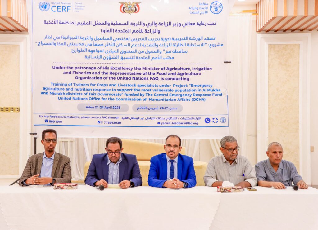 بدء ورشة تدريبية بعدن لتعزيز قدرات مختصي المحاصيل الزراعية والثروة الحيوانية