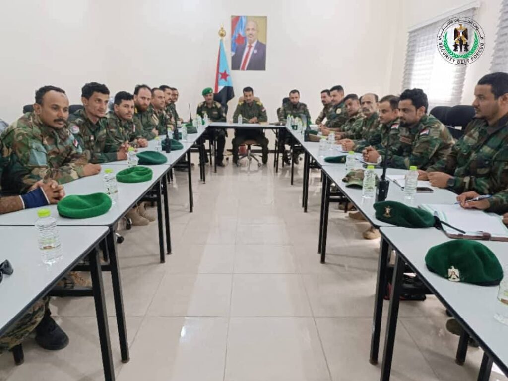 العميد الربيعي يترأس اجتماعاً أمنياً لقادة القطاعات ومدراء الإدارات في قوات حزام العاصمة عدن