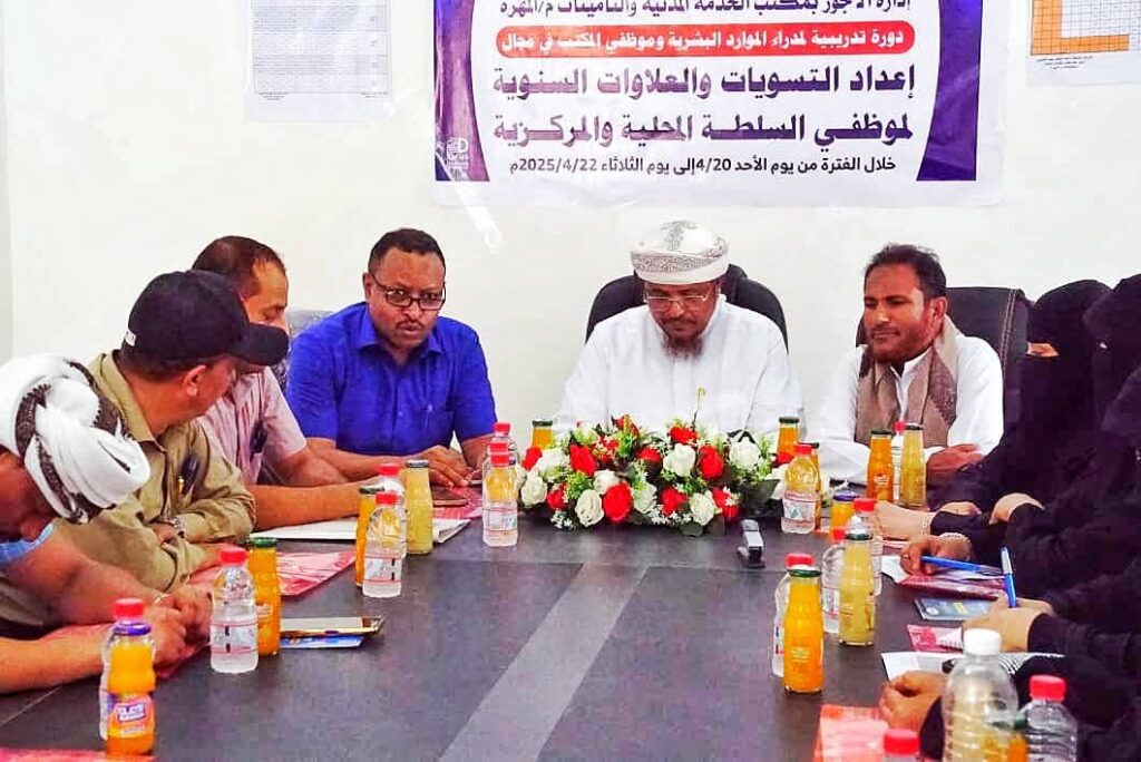 مكتب الخدمة المدنية بالمهرة ينظم دورة تدريبية لتعزيز كفاءة الموارد البشرية في المؤسسات الحكومية