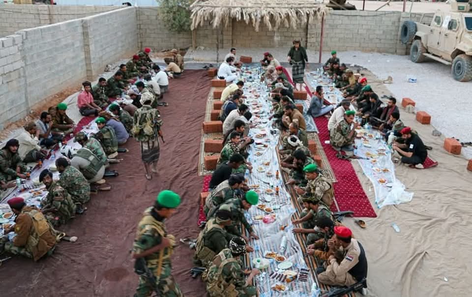 قوات دفاع شبوة تقيم مأدبة إفطار في معسكر النصر في عتق بحضور قيادات الألوية