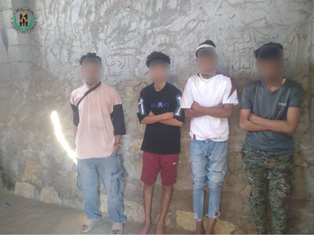قوات الحزام الأمني في لحج تضبط أربعة متعاطين ومشتبهين بترويج مواد مخدرة