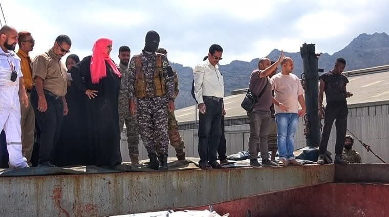 وكيل نيابة الصناعة تتفقد شحنة 5 ألف طن دقيق المحرزة في ميناء عدن
