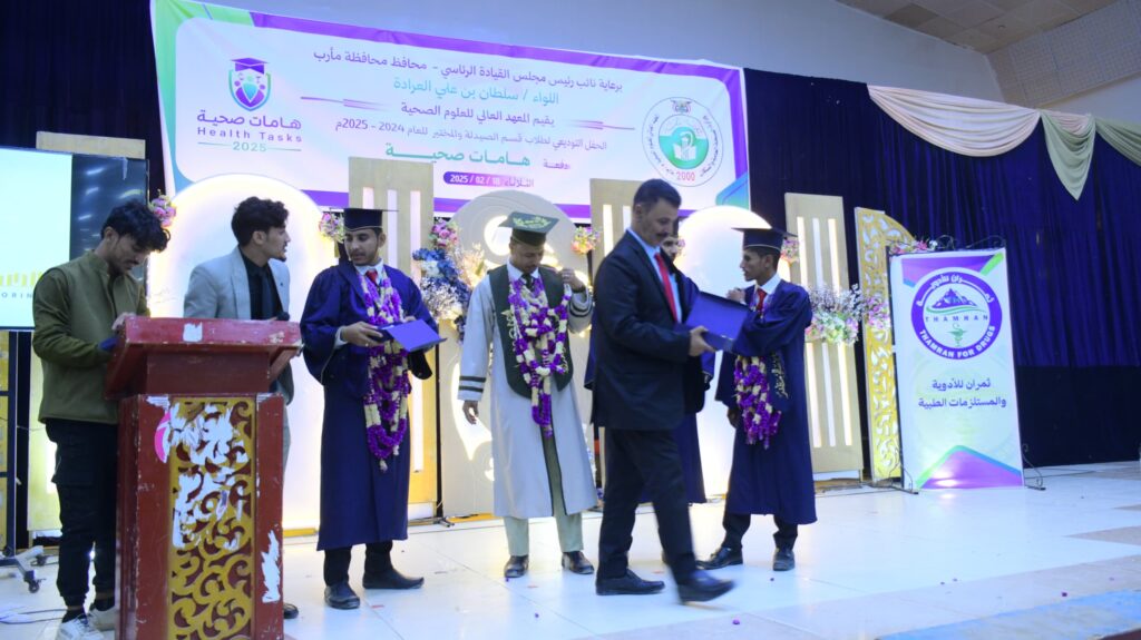 المعهد العالي للعلوم الصحية بمأرب يحتفل بتخريج 57 طالباً وطالبة من قسمي المختبرات والصيدلة