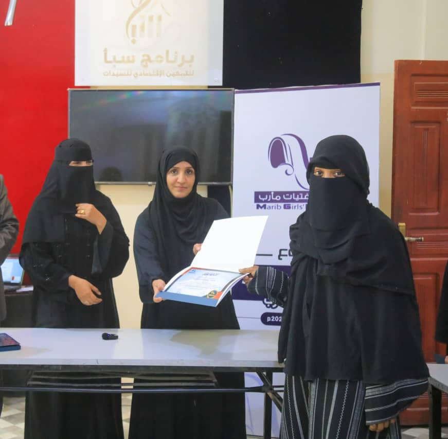 مؤسسة فتيات مأرب تختتم المرحلة الثانية لمشروع “تمكين خريجات محو الأمية اقتصادياً”
