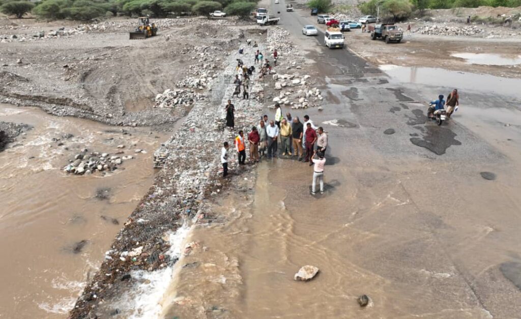 الماس يطلع على أعمال إصلاح أضرار السيول في جسر سائلة بله