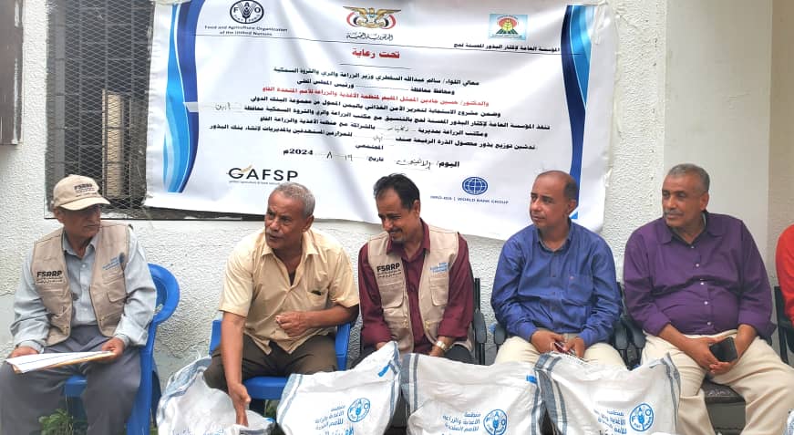 وزارة الزراعة تدشن توزيع الذرة الرفيعة بمديرية زنجبار