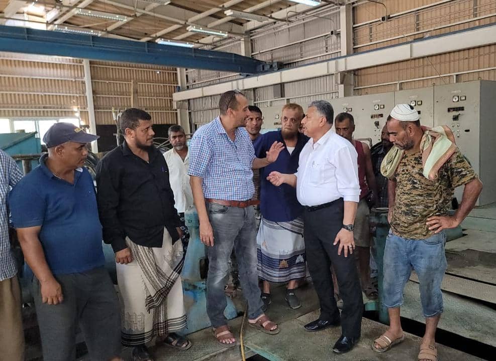 أمين عام محلي عدن يطلع على إنجاز مؤسسة المياه صيانة محطة البرزخ