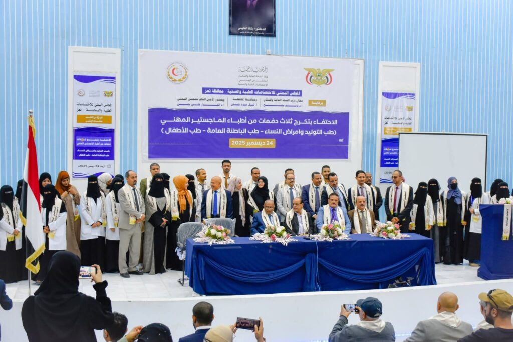 محافظ تعز يكرم خريجي ثلاث دفعات من أطباء الماجستير المهني