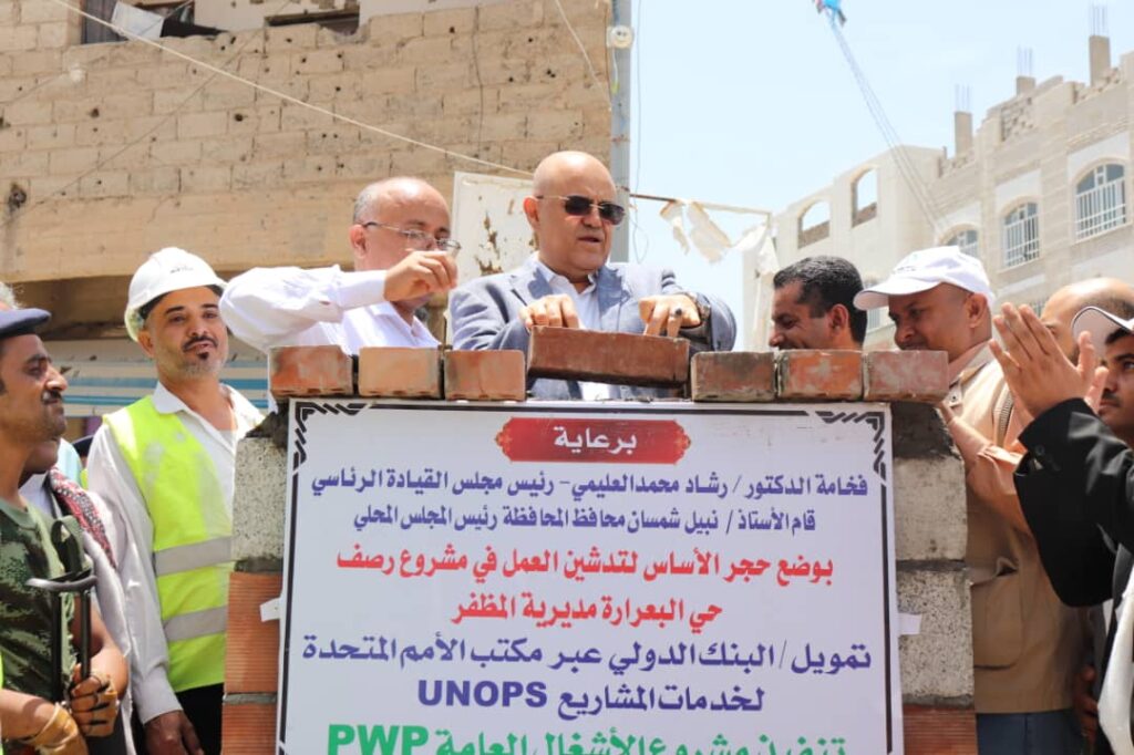 محافظ تعز يضع حجر الأساس لرصف حي البعرارة