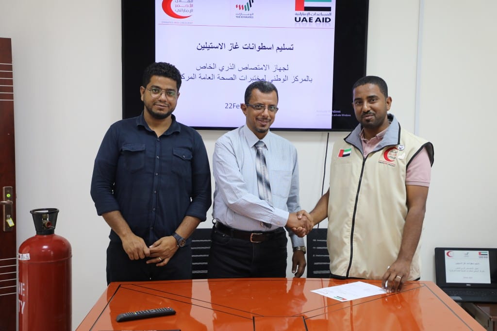 هيئة الهلال الأحمر الإماراتي ” توفر أسطوانات غاز الاستيلين للمركز الوطني لمختبرات الصحة العامة المركزية بالمكلا بمحافظة حضرموت