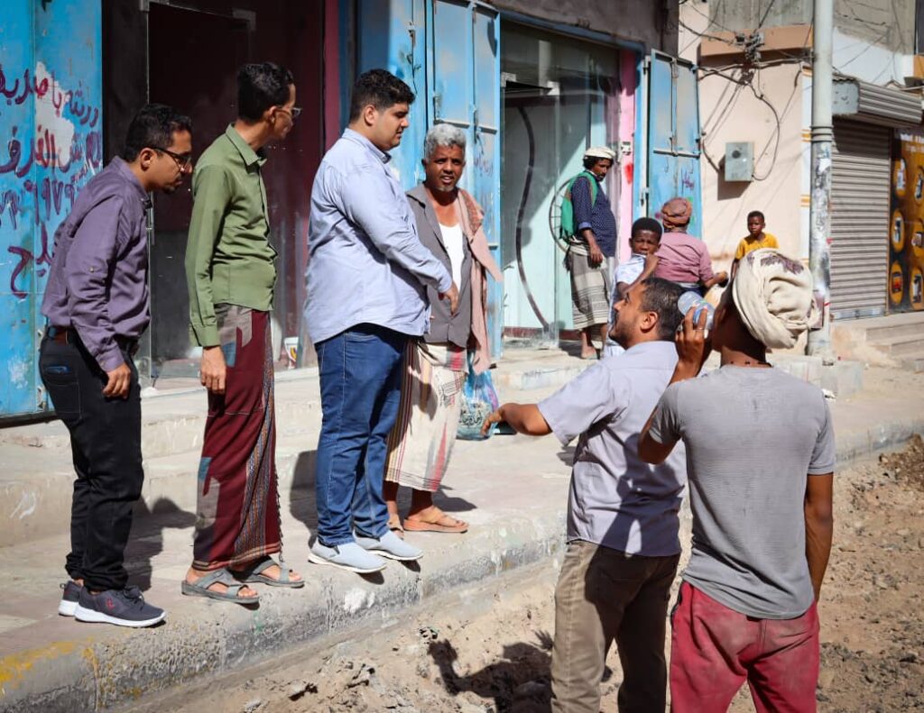 مدير مكتب وزارة الأشغال العامة والطرق بالساحل صالح العمري يتفقد مشروع صيانة وسفلتة خط باجعمان في المكلا