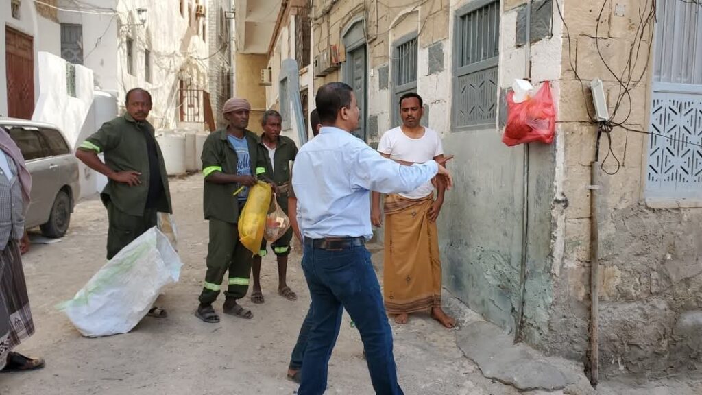 تدشين برنامج الجمع المباشر لأكياس القمامة بالتكاتك في حي الشهيد خالد بالمكلا