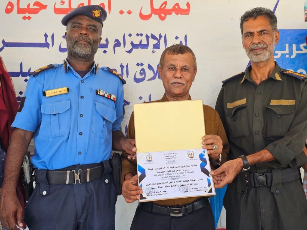 تكريم عدد من المبرزين في اختتام فعاليات أسبوع المرور العربي بمديرية الشحر