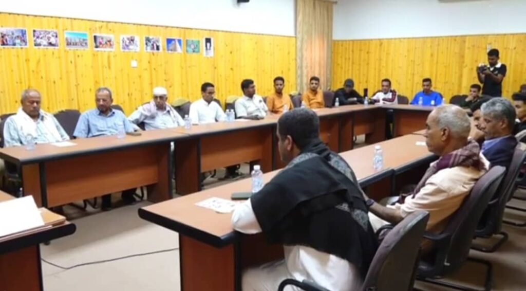 مدير عام الشحر يبحث مع عقلاء و أعيان منطقة المعدي سبل معالجة مشكلة مياه الشرب بالمنطقة