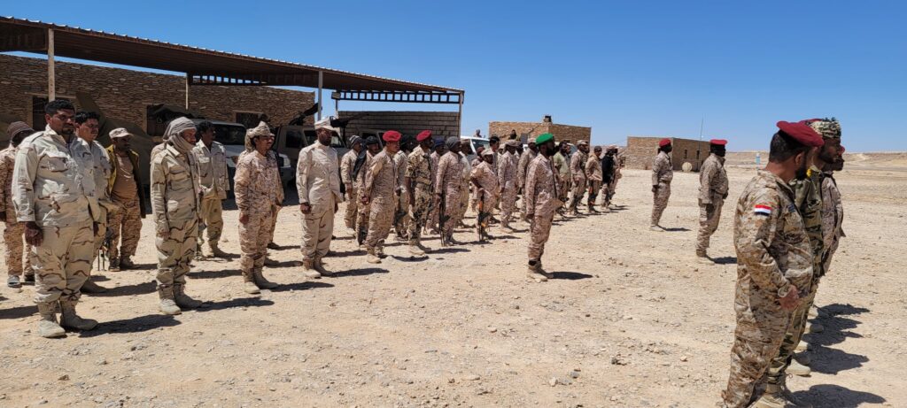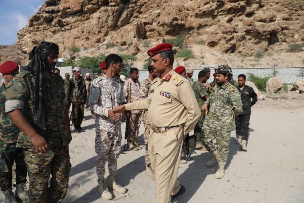 أركان لواء النخبة الحضرمي بالمنطقة العسكرية الثانية يقوم بزيارة معايدة للنقاط العسكرية التابعة للواء