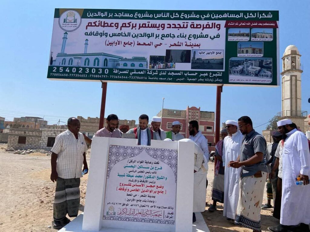 وكيل قطاع الإرشاد يتفقد سير العمل في مكتب أوقاف الشحر ويشيد بالمشاريع الوقفية والطوعية