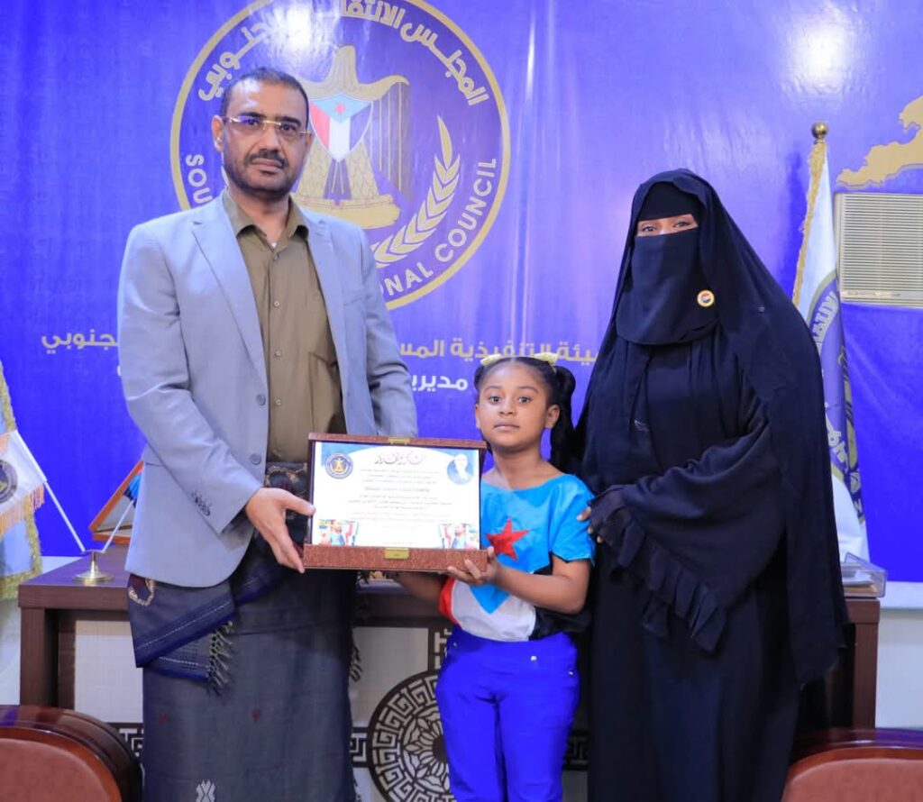 انتقالي وادي وصحراء حضرموت يكرّم الطفلة شاهندا عسيلة تقديرًا لمشاركتها النضالية