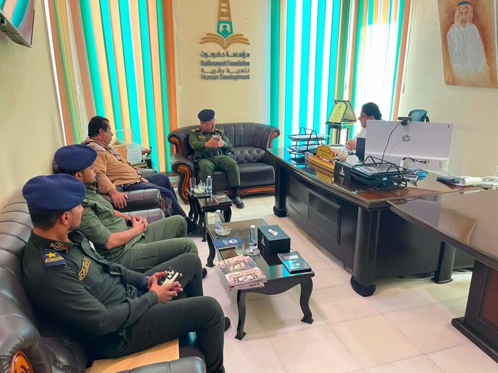 مدير كلية الشرطة حضرموت يزور مؤسسة حضرموت تنمية بشرية لتعزيز أوجه التعاون بين الجانبين