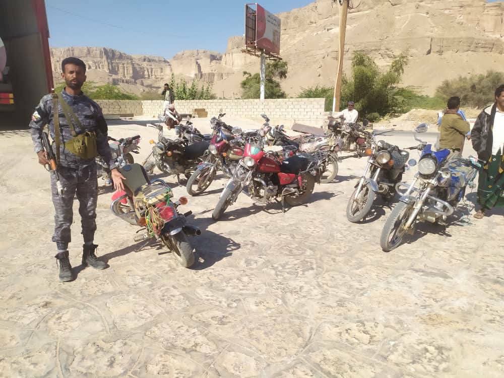 حملة أمنية واسعة اضبط أصحاب الدراجات النارية الغير مرقمة بمديرية دوعن