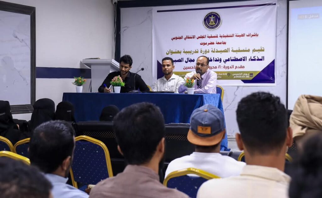 منسقية انتقالي الصيدلة بحضرموت تقيم دورة تدريبية بعنوان “الذكاء الاصطناعي وتداخلاته في مجال الصيدلة”