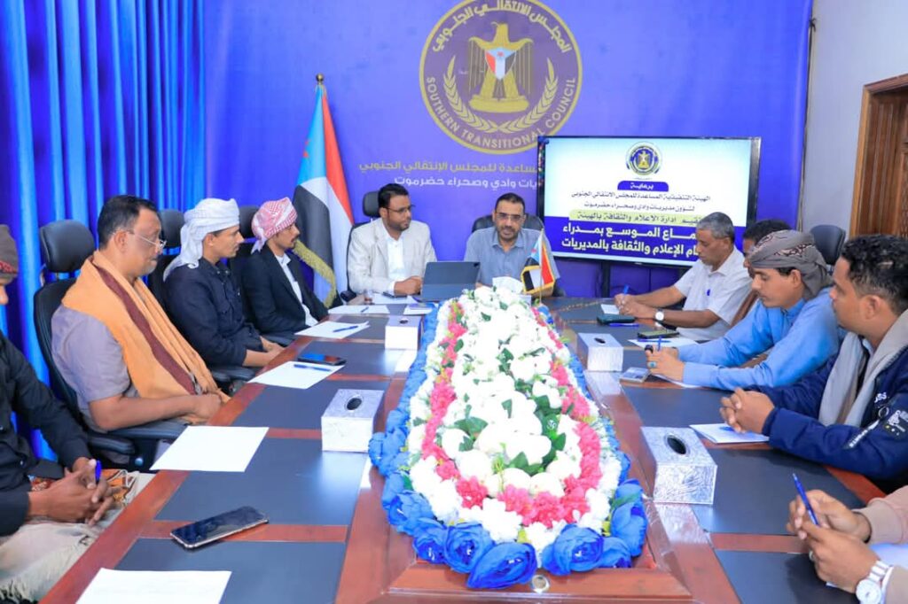 انتقالي وادي وصحراء حضرموت يعقد لقاءً تشاورياً برؤساء الأقسام الإعلامية والثقافية بالمديريات