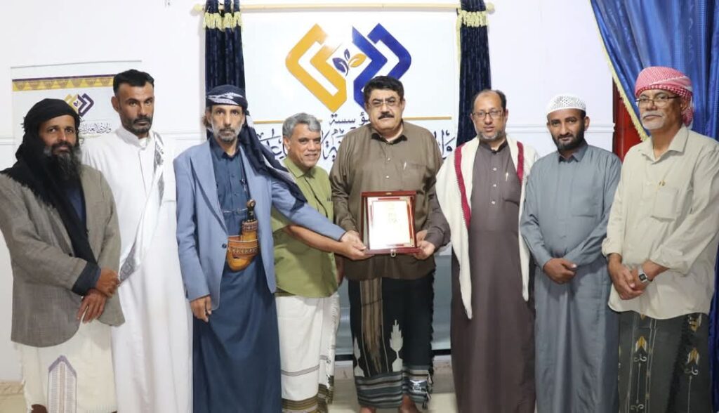 الشيخ فائز بن بشر النهدي يكرم مؤسسة وادي العين بدرع وفاء وعرفان ويشيد بدورها في منطقة فضح بمديرية وادي العين وحورة