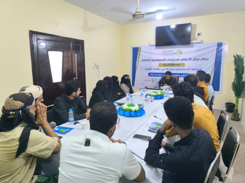 مركز الأحقاف للدراسات الاستراتيجية والإعلام ينظم محاضرة حول الصحافة الاستقصائية ودورها في مكافحة الفساد