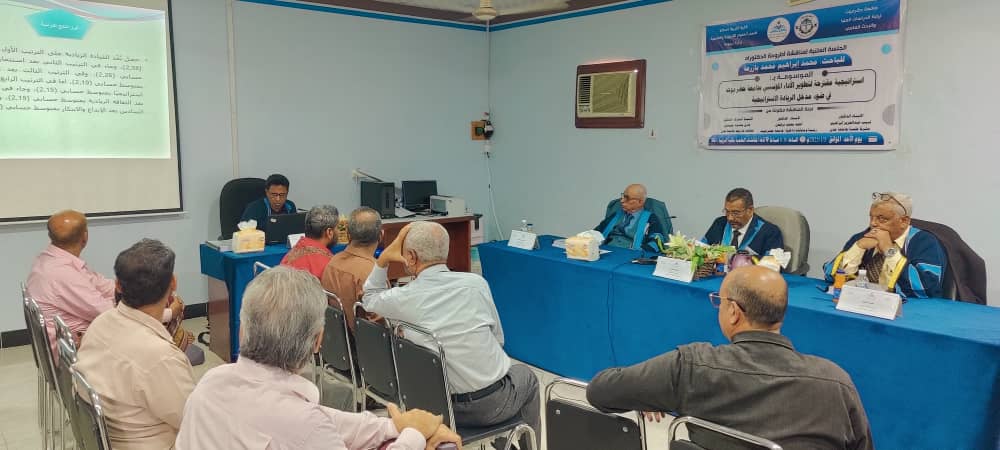 جامعة حضرموت تمنح الباحث محمد إبراهيم محمد بازرعة درجة الدكتوراه من قسم العلوم التربوية و النفسية تخصص اداره تربويه بكلية التربية المكلا
