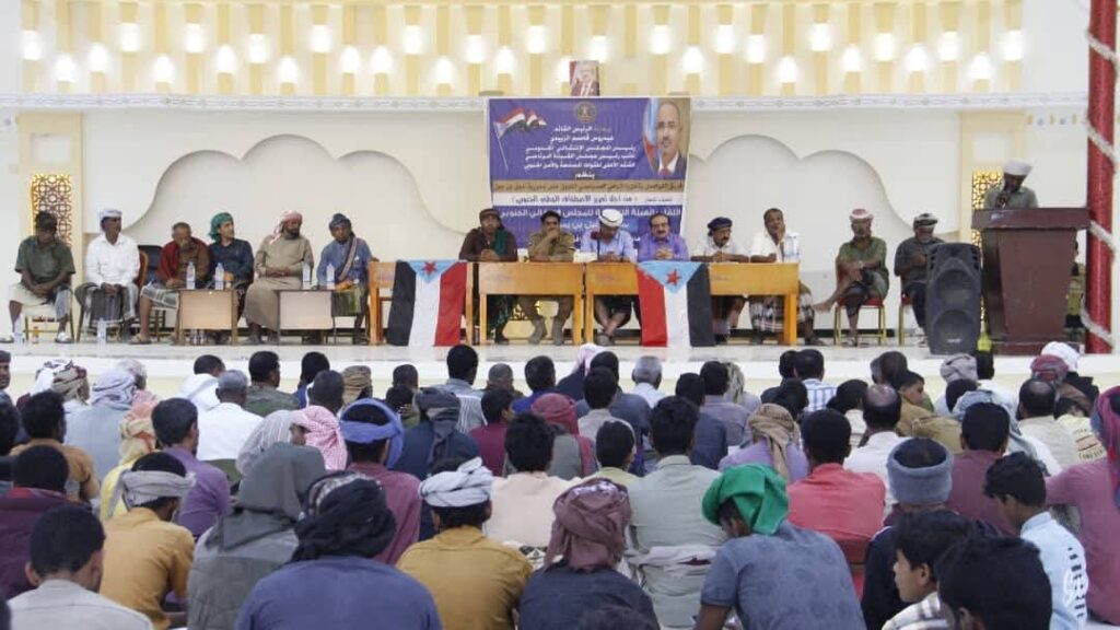 فريق التواصل وتعزيز الوعي السياسي بالمجلس الانتقالي يعقد لقاءً موسعاً بالقيادة المحلية والشخصيات القبلية والاجتماعية بمديرية غيل بن يمين