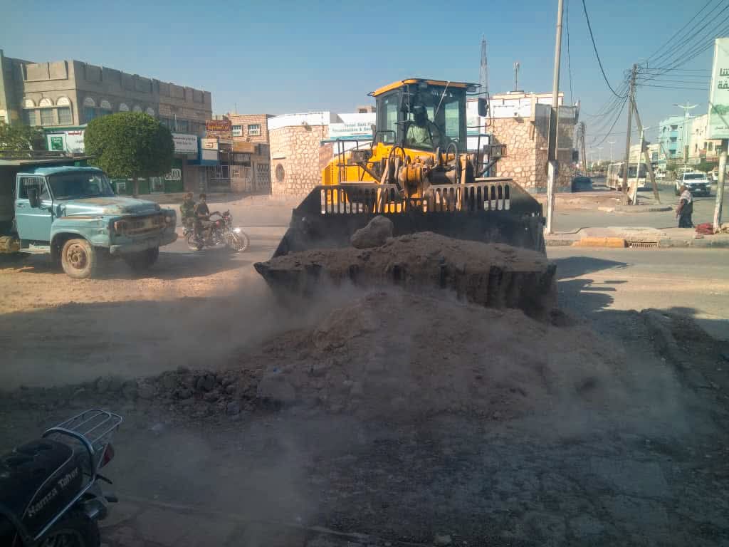 مكتب الأشغال العامة والطرق ينفذ حمله لإزالة المخلفات من الشوارع الرئيسية بمدينة الشحر.