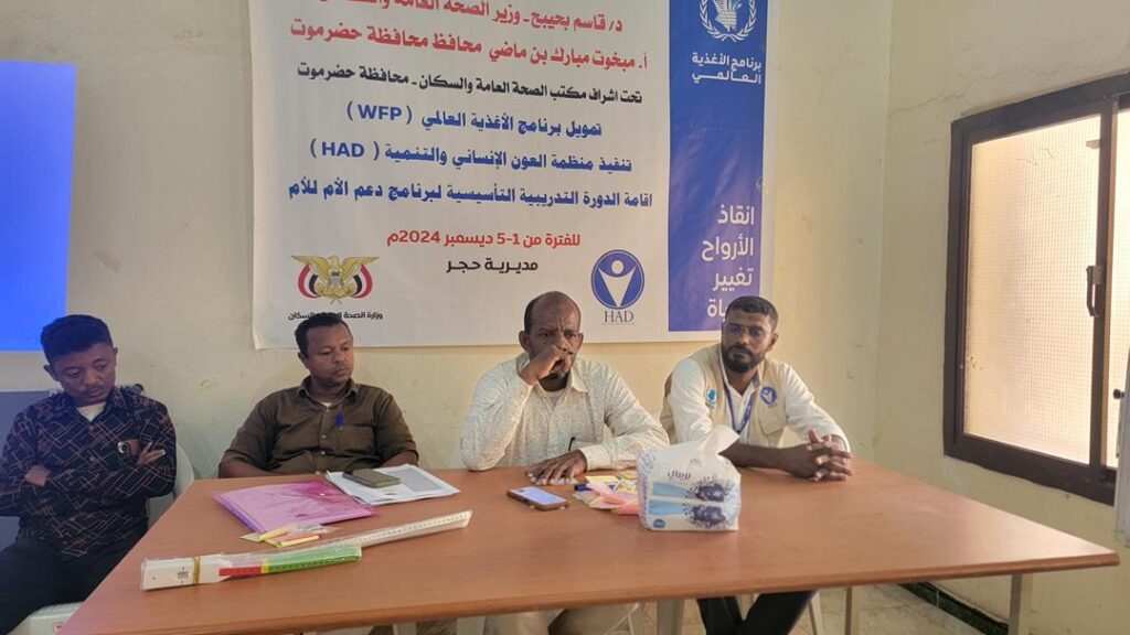 منظمة العون الإنساني والتنمية HAD تنفذ الدورة التدريبية التأسيسية لبرنامج دعم الأم للأم بمديرية حجر