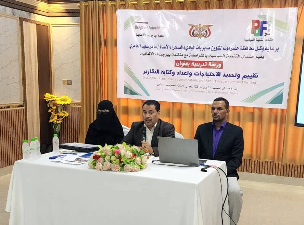 اختتام ورشة تدريبية بسيئون حول تقييم وتحديد الاحتياجات وإعداد وكتابة التقارير
