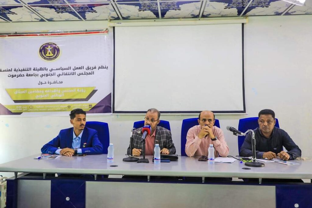 منسقية انتقالي جامعة حضرموت تنظم محاضرة بعنوان” رؤية المجلس و أهدافه ومضامين الميثاق الوطني الجنوبي”