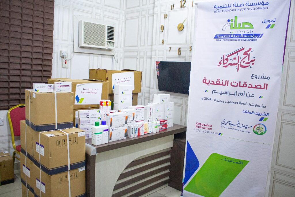مؤسسة صلة للتنمية تدعم مستوصف الحياة الخيري بمحاليل مخبرية وأدوية
