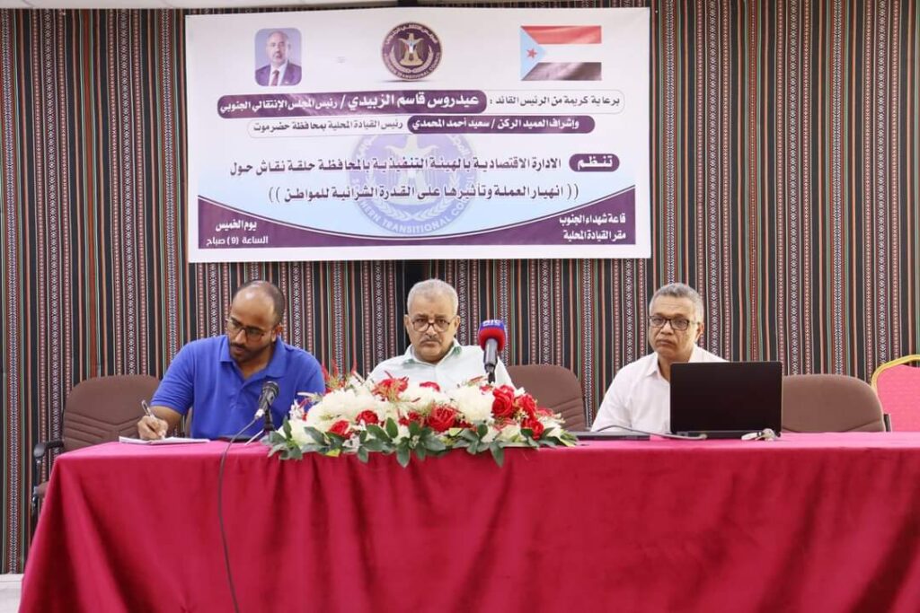 انتقالي حضرموت ينظم حلقة نقاش حول انهيار العملة وتأثيرها على القدرة الشرائية للمواطن