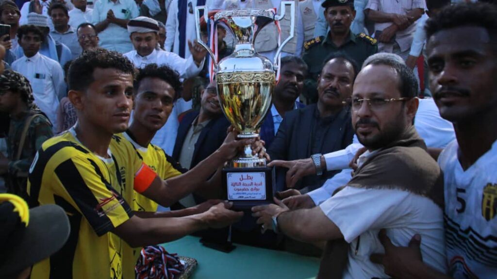 رئيس تنفيذية انتقالي حضرموت يسلّم كأس دوري الفقيد الكابتن خالد بن بريك لكرة القدم لفريق نسر 40 شقة بالمكلا