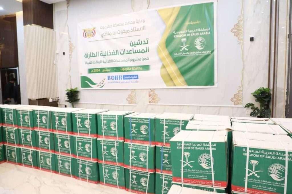 استلام المساعدات الغذائية المخصصة لكافة الموظفين والعمالة التابعة لصندوق نظافة وتحسين ساحل حضرموت